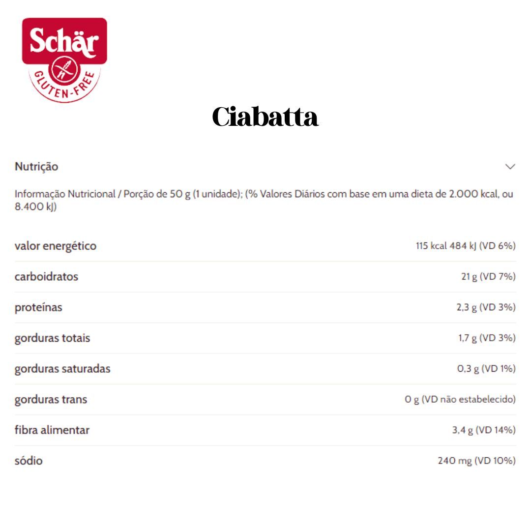 PÃO TIPO CIABATA PRÉ-ASSADO SCHAR